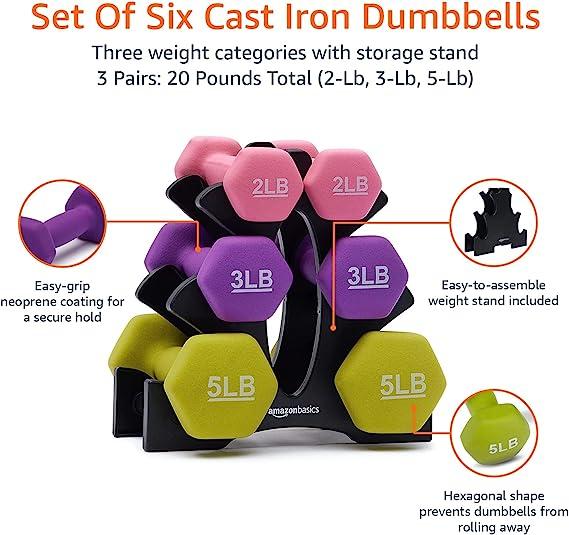 Neoprene Workout Dumbbell. The Amazon Basics Neoprene Workout Dumbbell is a versatile and essential piece of fitness equipment for strength training and toning exercises. These dumbbells feature a neoprene coating that provides a comfortable and secure grip, making them suitable for both beginners and experienced fitness enthusiasts.