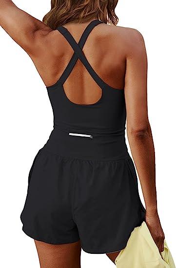 Beaufident Womens One Piece Outfits Onesie Workout Romper Athletic Exercise Clothes